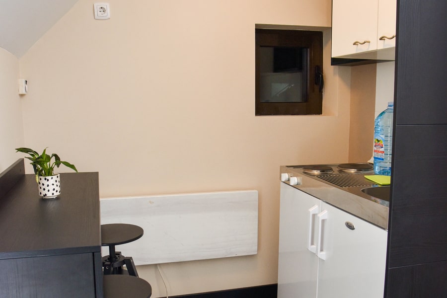 Vila Mramor raspolaže sa 2 studio apartmana, na 4. spratu, bez lifta, sa bračnim krevetom. Apartmani sadrže mini kuhinju (2 električne ringle, frižider i inventar), plakar, kupatilo, TV, Wifi i konzolnu policu sa 2 barske stolice.